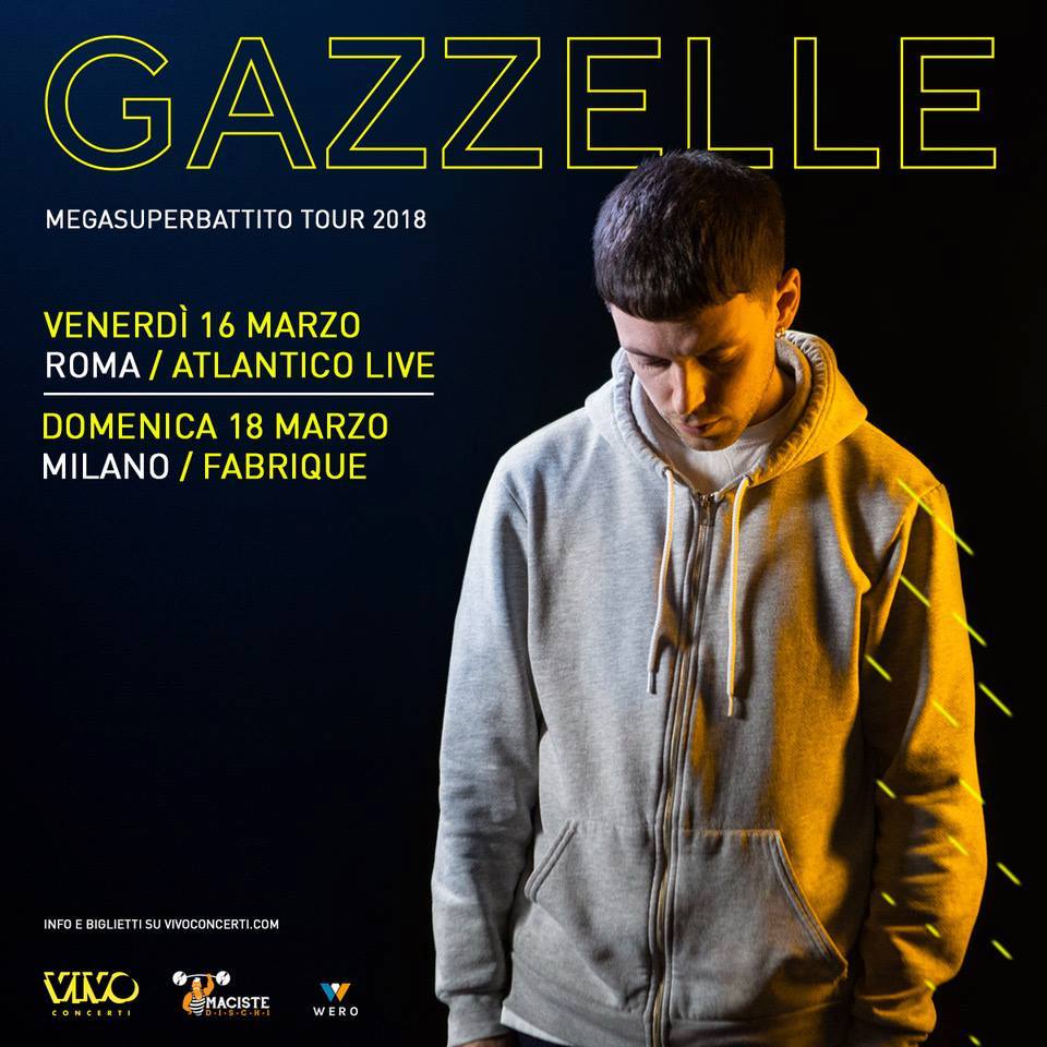 Gazzelle: annunciate le ultime due date del Megasuperbattito tour 2018November 9, 2017… Read More »Gazzelle: annunciate le ultime due date del Megasuperbattito tour 2018